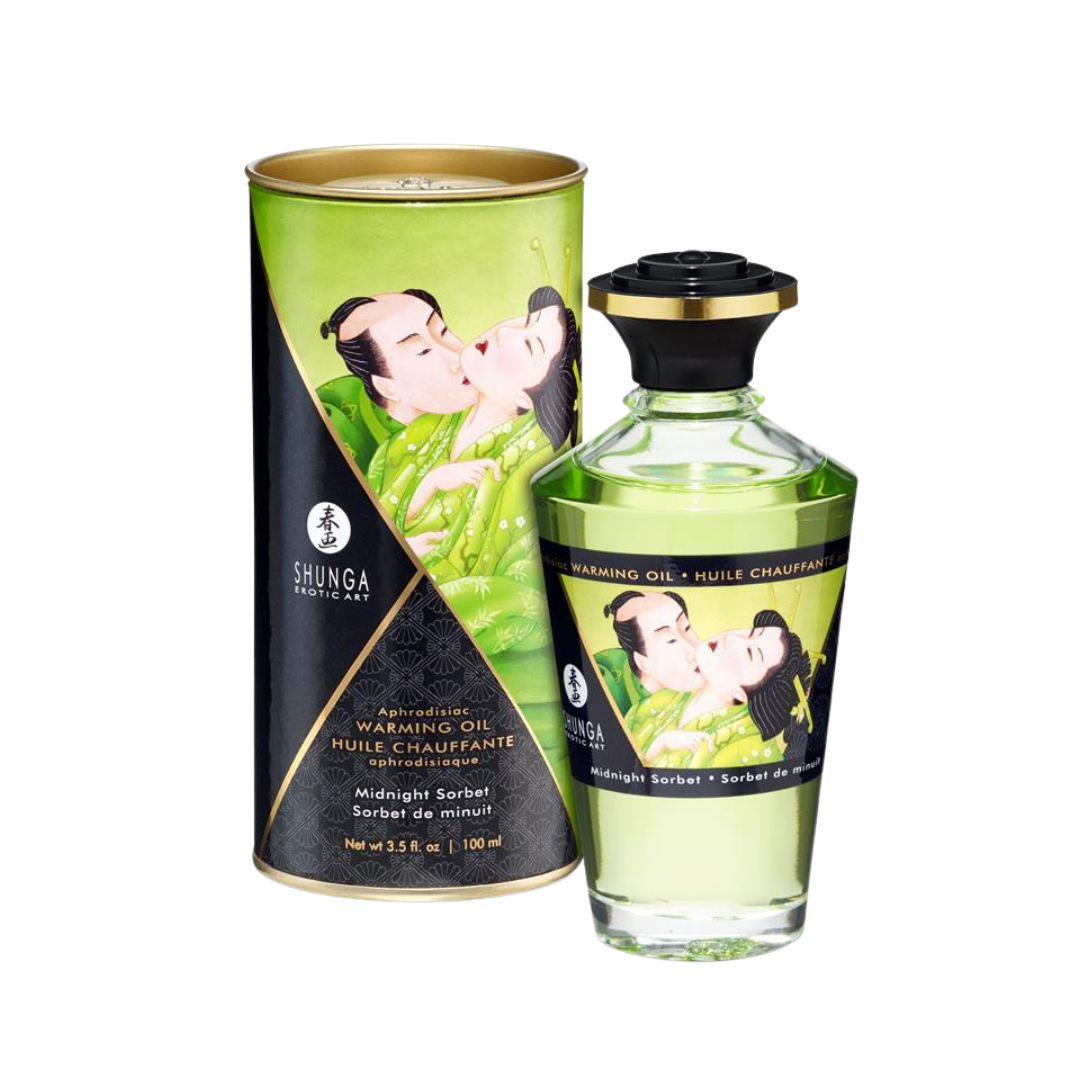 ¿Qué secretos esconde la medianoche? Este aceite de masaje los desvela. Su intrigante aroma a sorbete de medianoche y su efecto calor son el inicio de una aventura nocturna inolvidable.